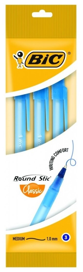 Упаковка ручек шариковых BIC Round Stic 1 стержень 0.32мм синий пакет 3шт [9021522] 10 шт./кор.