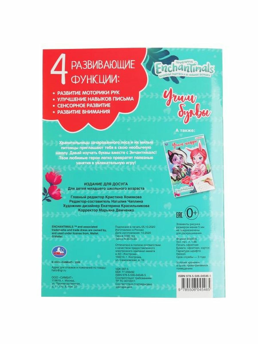 Раскраска с фольгой «Enchantimals. Учим буквы» ТМ «УМка» станет прекрасным развивающим подарком для маленькой художницы:— тщательно прорисованные картинки для раскрашивания— закрепляем знания о буквах— красивая обложка с элементами из фольгиВаша принцесса будет рада повстречаться на страницах этой занимательной раскраски с необычными обитательницами Зачарованного леса и их питомцами. Ребёнок сможет не только интересно провести время, но и выучить алфавит, а также подготовить руку к письму. Благодаря удобному формату раскраску можно взять с собой в дорогу.Игровые занятия с раскраской ТМ «УМка» способствуют развитию:— мелкой моторики— сенсорного развития— творческого мышления— внимания— речиОбъём: 16 стр. Формат: 214х290 мм (А4).Материал: бумага офсетная.Рекомендовано детям младшего школьного возраста.