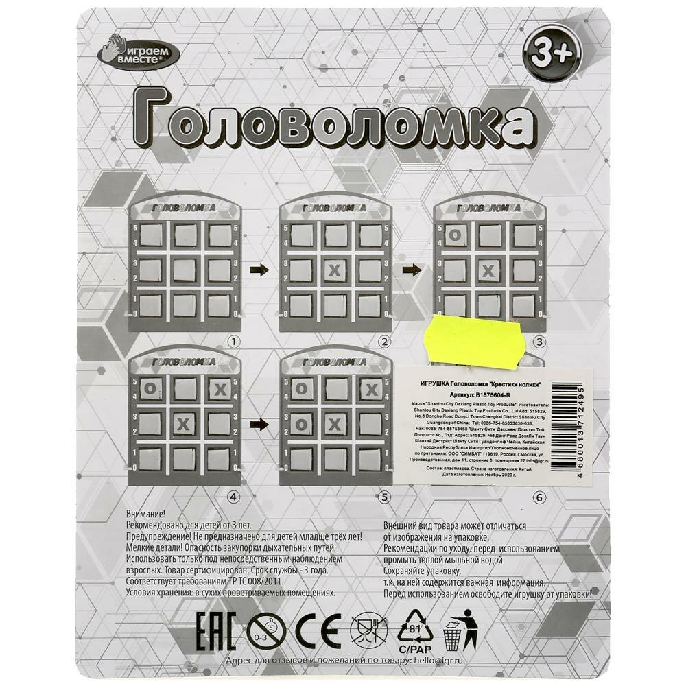 | Наименование модели | Головоломка Играем Вместе Крестики нолики |