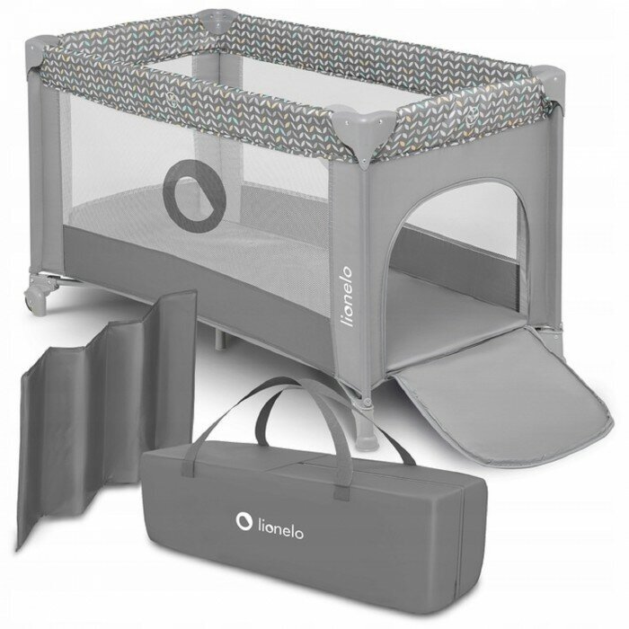 Манеж Lionelo Lo-Stefi Особенности: Детская кроватка плюс манеж Дополнительный боковой вход Транспортная сумка в комплекте LockGuard защита от складывания Система быстрого раскладывания и складывания. Практический вход. Боковой вход на молнии позволяет детям старшего возраста входить и выходить самостоятельно. Замок находится снаружи манежа, поэтому мы можем быть уверены, что ребенок внутри находится в безопасности и не откроет его самостоятельно. Функциональные стороны. На длинной и на короткой стороне есть воздушные сетки, которые обеспечивают адекватную циркуляцию воздуха и обзор ребенка. Блокировка колес. Ролики с тормозом предотвращают случайное движение кровати, а прочные ножки гарантируют устойчивость. Без острых краев. Все края детской кроватки закрываются профилированными пластиковыми накладками для максимальной безопасности ребенка. Система LockGuard. Конструкция защищает манеж от случайного складывания, что значительно повышает безопасность ребенка. Этот раствор особенно важен, когда ребенок стоит или прыгает. Транспортная и защитная сумка. Система быстрого складывания детской кроватки позволяет легко транспортировать или хранить. Этому также способствует входящая в комплект транспортировочная и защитная сумка. Он защищает детскую кроватку от грязи. Практичная ручка облегчает переноску, благодаря которой Стефи пригодится и в дороге. Гарантийный срок: 6 месяцев.