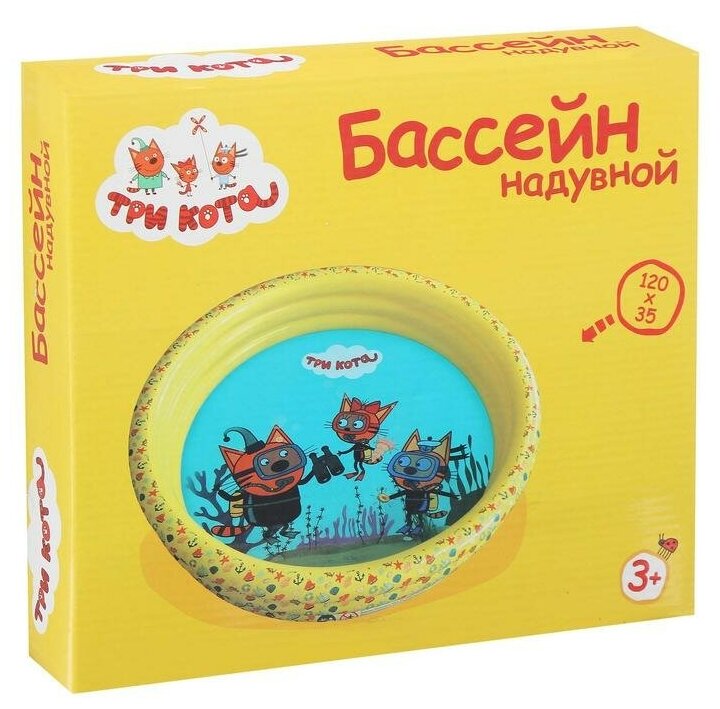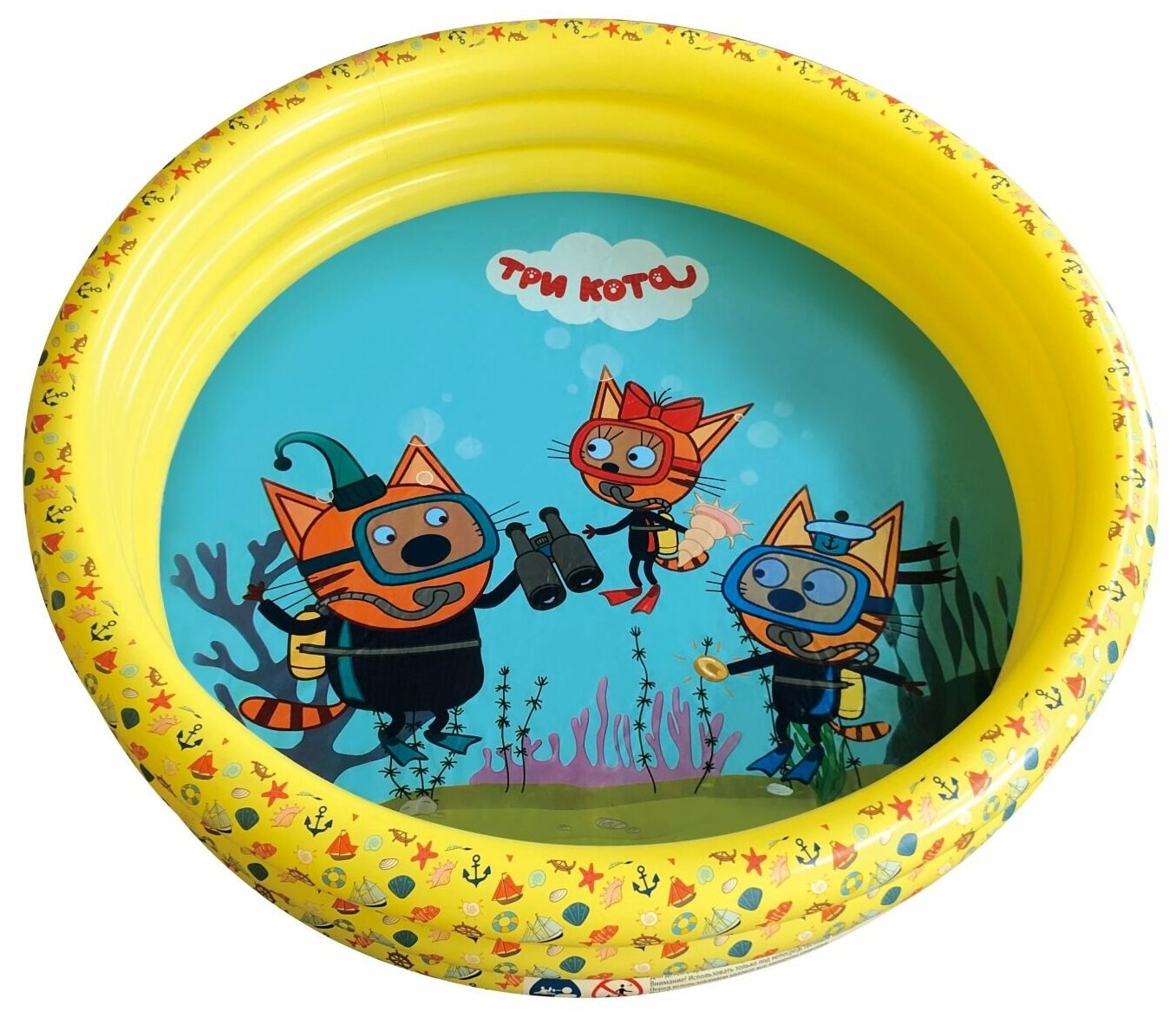 Детский надувной бассейн, диаметр 120см, высота 35см с изображениями мультипликационных героев "Три кота" позволит малышу освежиться в жаркий летний день в абсолютной безопасности. Мягкие стенки и дно защитят от ударов, а глубина специально адаптирована для детей. Любимые персонажи обязательно порадуют малышей, сделая купание в бассейне ещё весплее.