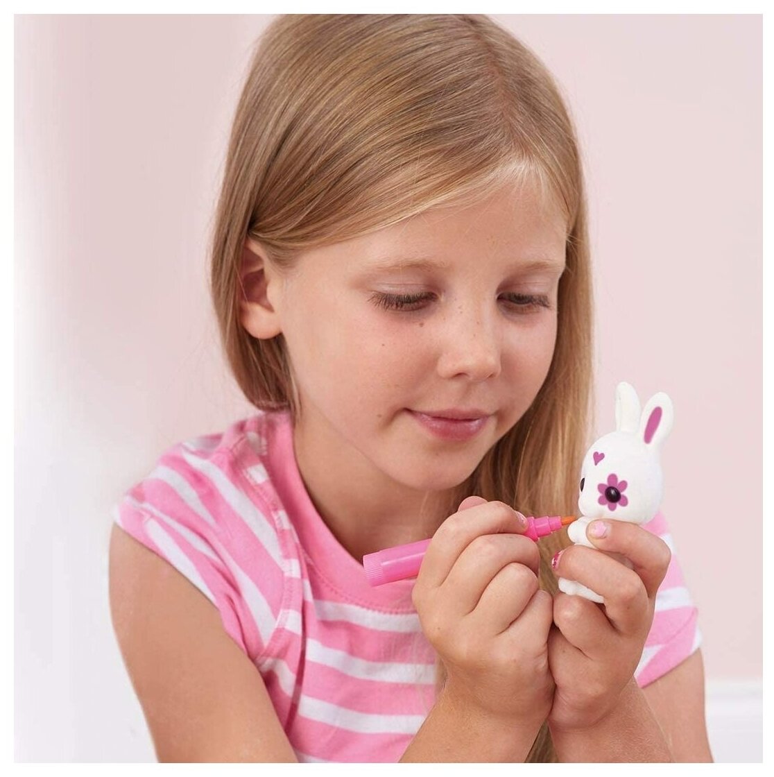 В наборе вы найдете смывающиеся водой фломастеры, чтобы украсить и персонализировать флокированного малыша, войлочные аксессуары для кроликов.