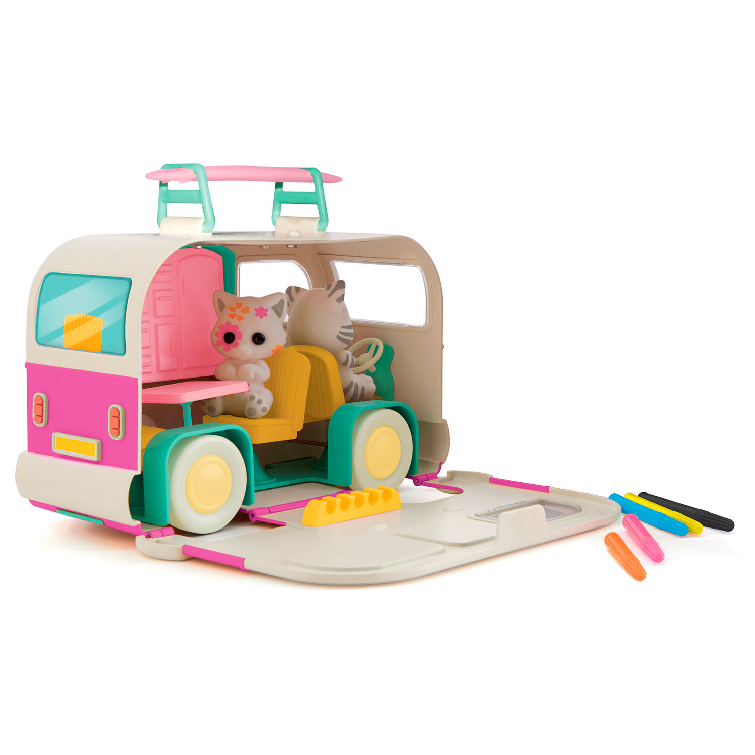 | Состав набора | фигурки котят; домик на колесах; фломастеры |