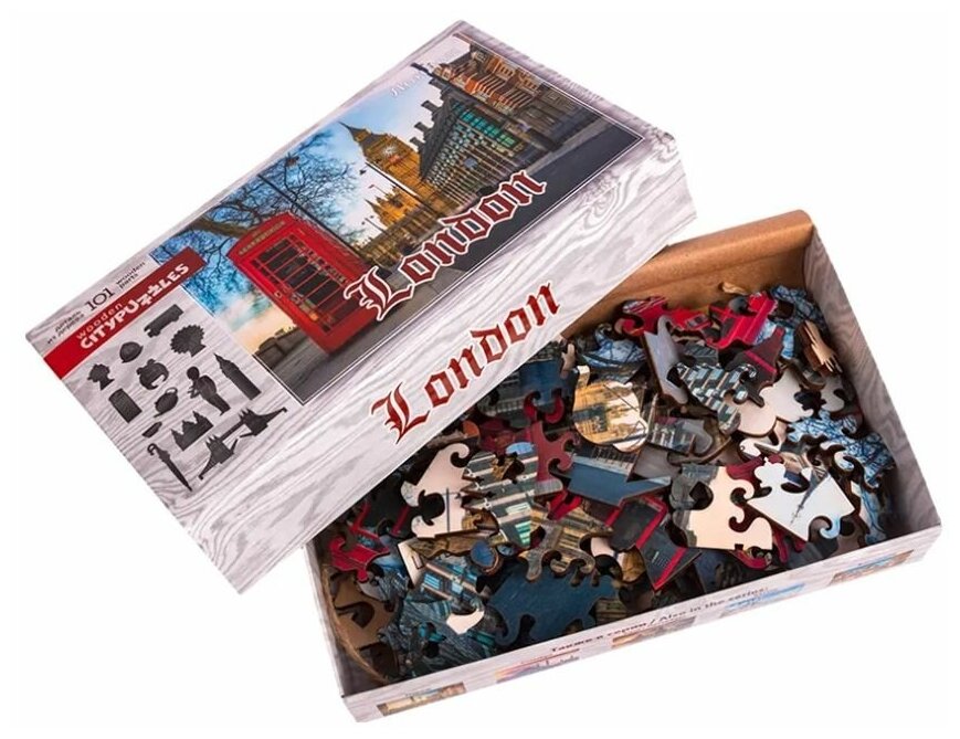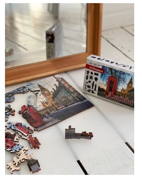 CITYPUZZLES – серия деревянных пазлов с изображениями самых известных городов мира. Деревянные элементы пазла представляют из себя как детали по мотивам достопримечательностей и символов города, так и детали причудливых форм. Нанесение изображения сделано методом прямой экопечати, это позволило сохранить для вас структуру и приятный запах дерева.