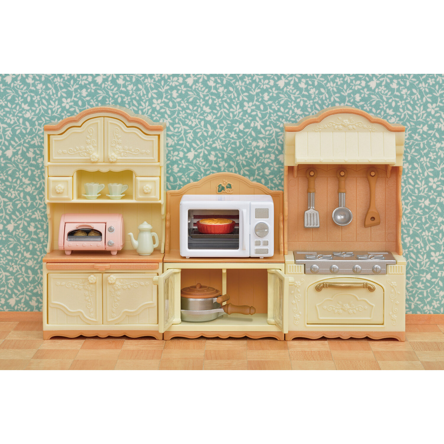 Теперь у любимых героев Sylvanian Families появилось классное кухонное оборудование! позволяет готовить вкусную еду с минимальными затратами времени. Идеальное решение для тех, кто торопится или только что пришел с работы и хочет поесть. Теперь папы и мамы могут демонстрировать свое кулинарное искусство, а малыши – помогать им. В шкафчике с открывающимися дверцами можно хранить посуду и кухонные принадлежности.