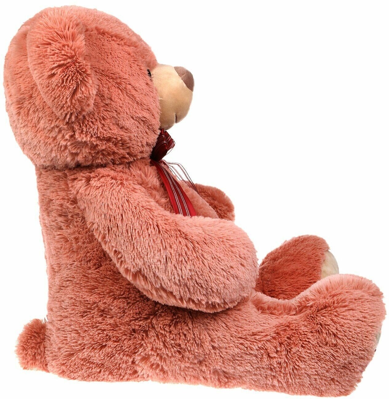 цвета. На шее у мишки повязан стильный атласный бант малинового цвета.