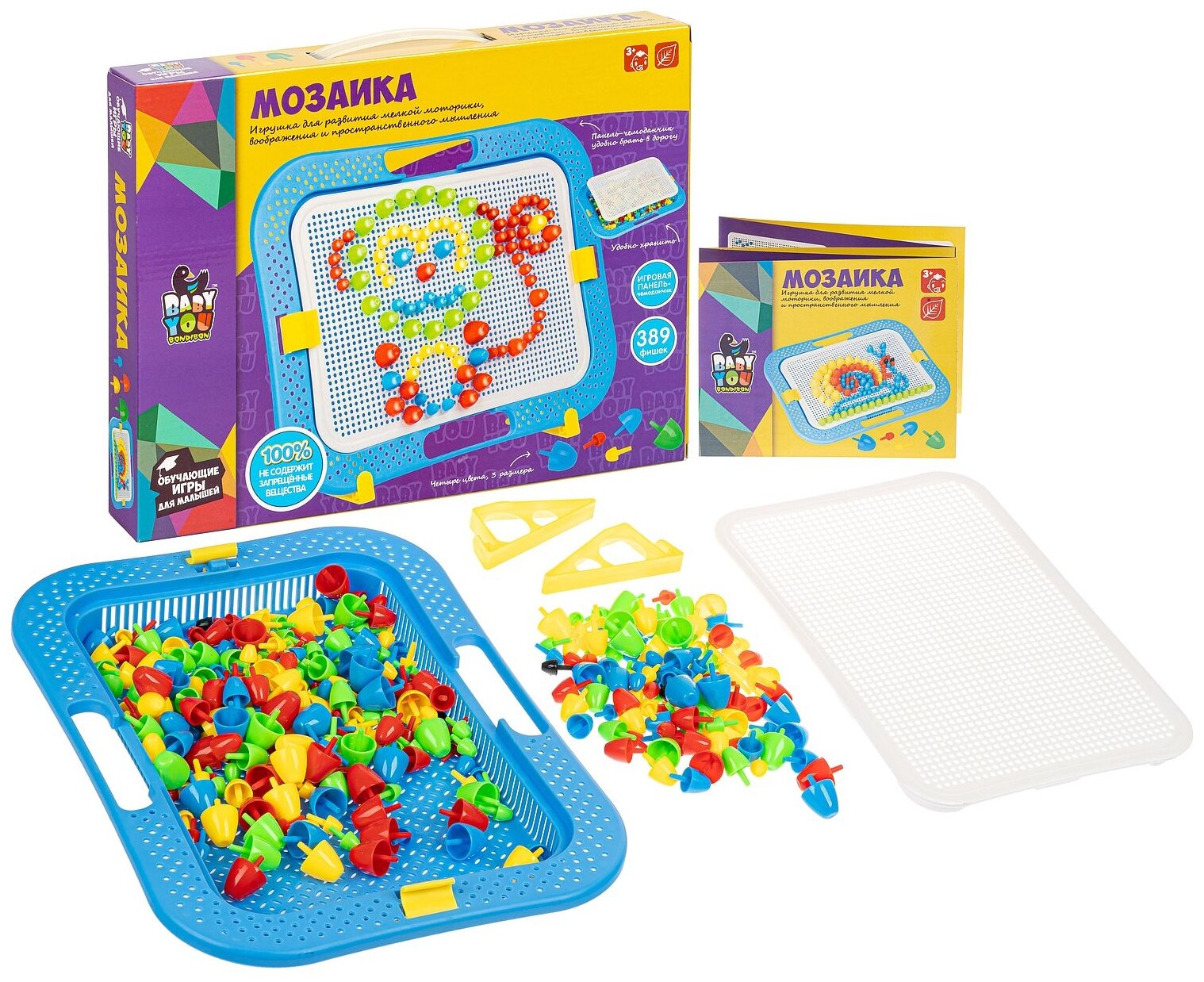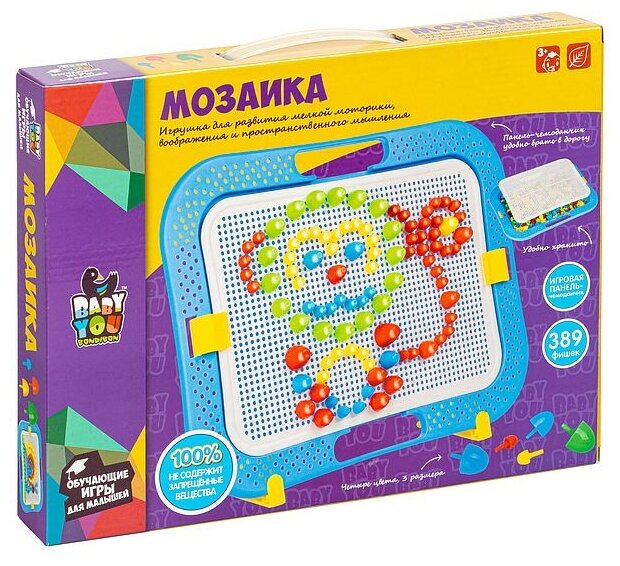 Яркая, разноцветная мозаика для малышей с подставкой серии Baby You ТМ Bondibon - прекрасная игрушка для изучения цветов, развития творческого, пространственного и логического мышлений, памяти, усидчивости и внимания. С помощью разноцветных фишек различной величины и, согласно картинкам-примерам из инструкции, ребенок сможет собрать красочную картинку, а также придумать свои сюжеты.