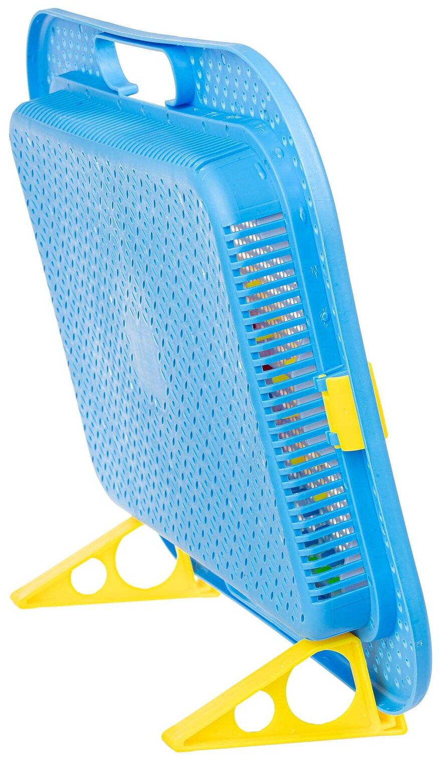 Игровая панель может быть вертикально закреплена с помощью специальных ножек-подставок. Под игровым полем находится пластиковая основа, в которой удобно хранить детали мозаики. Также, благодаря специальным ручкам-отверстиям, игровую панель можно использовать, как чемоданчик для переноски, что позволит брать мозаику с собой в гости или путешествие.
