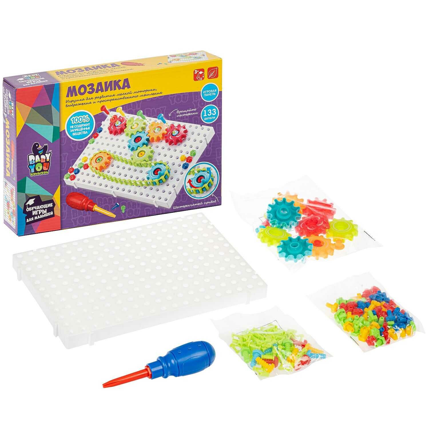 Мозаика Bondibon с шестеренками и отверткой 133 детали Мозаика для малышей с шестеренками и отверткой (133 детали)