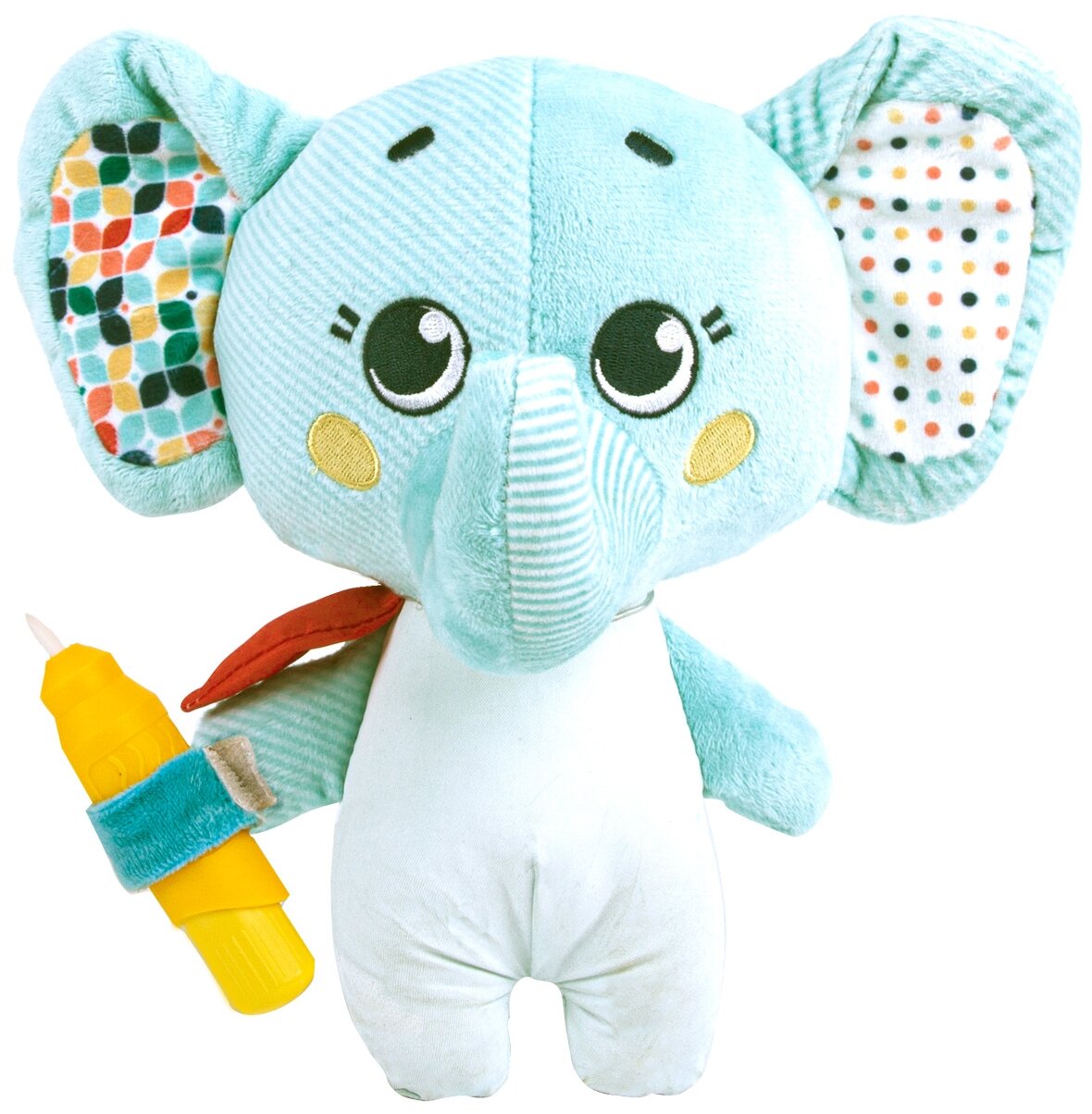 Развивающая игрушка-раскраска "Слоник Джамбо" подойдет для творческих малышей, которые любят рисовать. В комплекте с игрушкой идет водный фломастер, с помощью которого можно рисовать на специальной белой части тела игрушки. Когда картинка высохнет, на теле слоника можно снова рисовать. Воду во фломастере можно пополнять неограниченное количество раз.