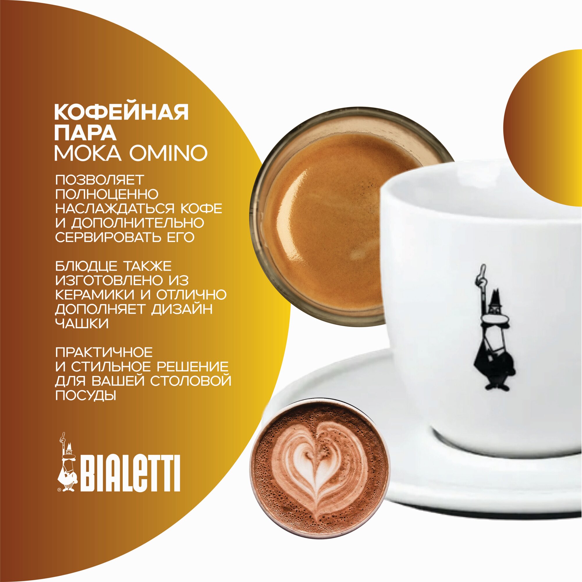 Bialetti Кофейная пара Bialetti с оригинальным и элегантным дизайном. Благодаря специальной форме, чашка надолго сохраняет температуру и аромат Вашего кофе.