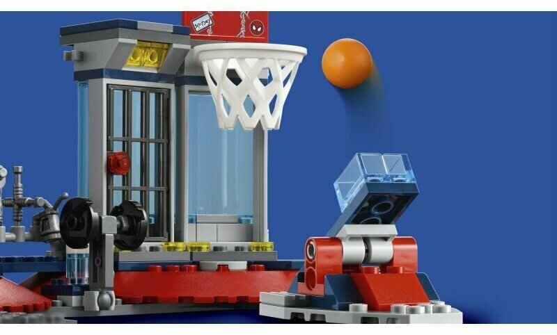 - Набор легко объединить с другими наборами LEGO Marvel Spider-Man. В набор входят дополнительные аксессуары для веселых игр: несколько сетей из паутины, экраны систем безопасности и управляемое вручную устройство для подачи баскетбольных мячей.