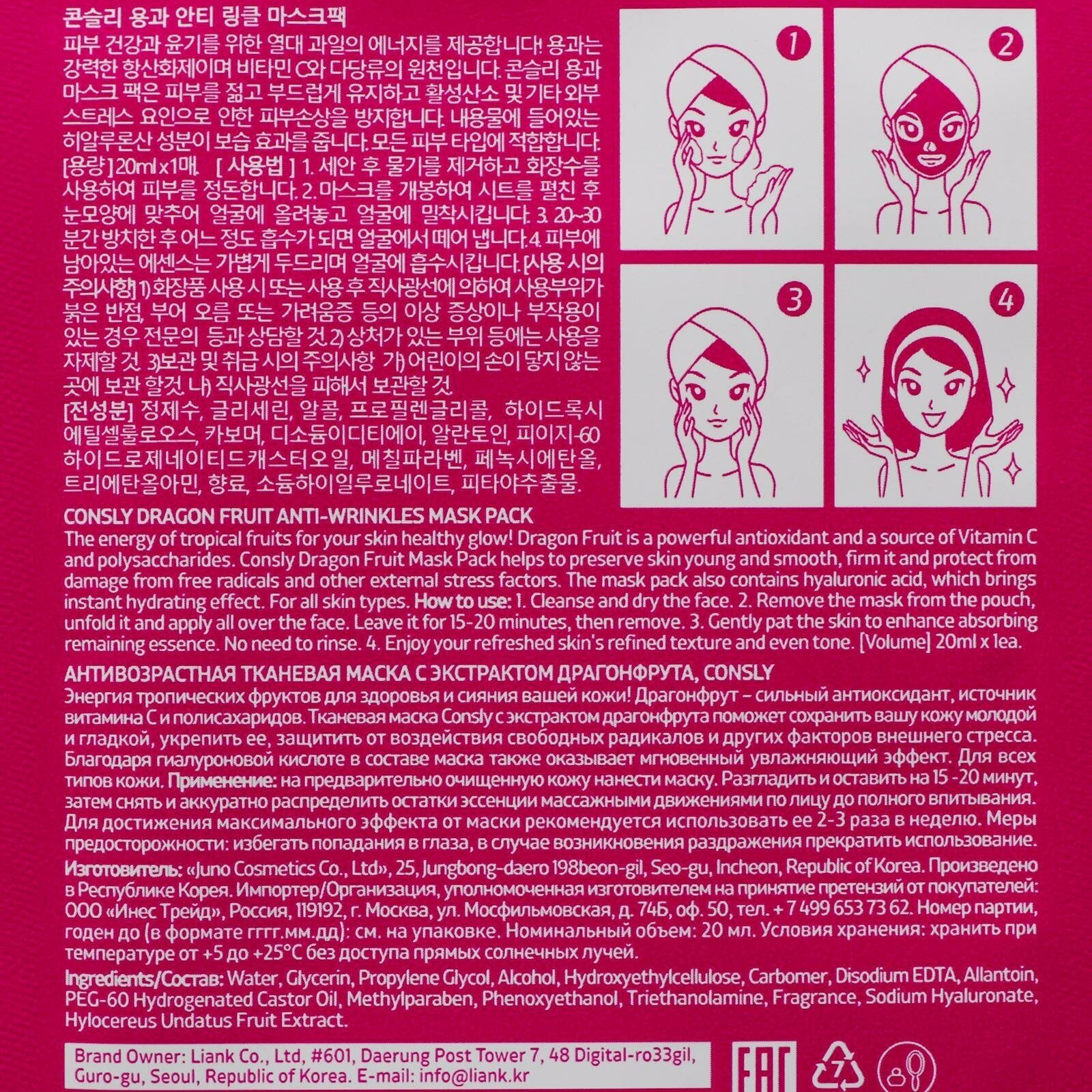 Тканевая маска Consly антивозрастная с экстрактом драгонфрута 20мл (291398)