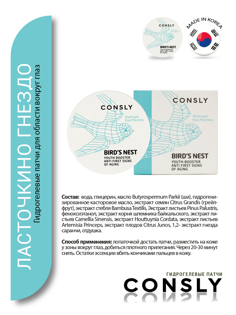Гидрогелевые патчи Consly для области вокруг глаз с экстрактом ласточкиного гнезда 60шт. (804470)