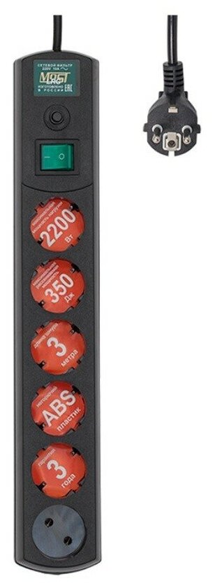 Сетевой фильтр MOST LRG 3 м (черный)