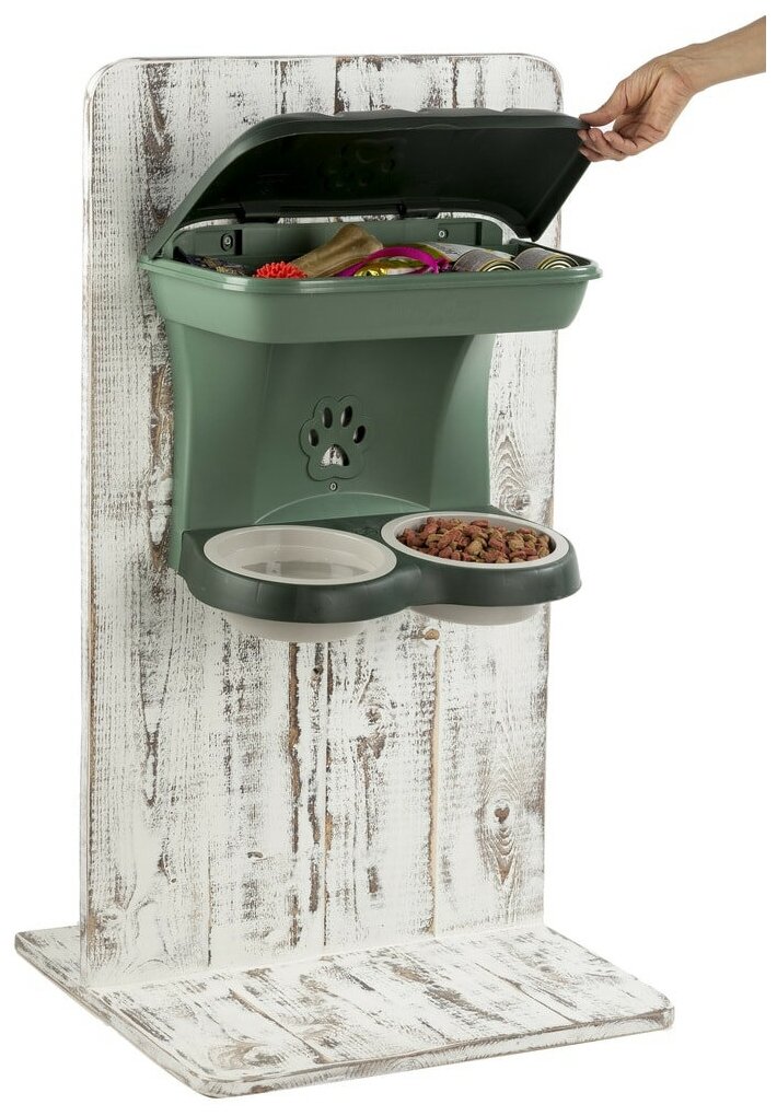 Подвесная двойная миска для собак создана с учётом анатомических особенностей собак. Правильное положение шеи при кормлении важно, особенно для растущих щенков. По мере взросления вы сможете регулировать высоту миски, а не покупать новую. В функциональной подвесной миске также есть контейнер, где можно хранить игрушки и лакомства.