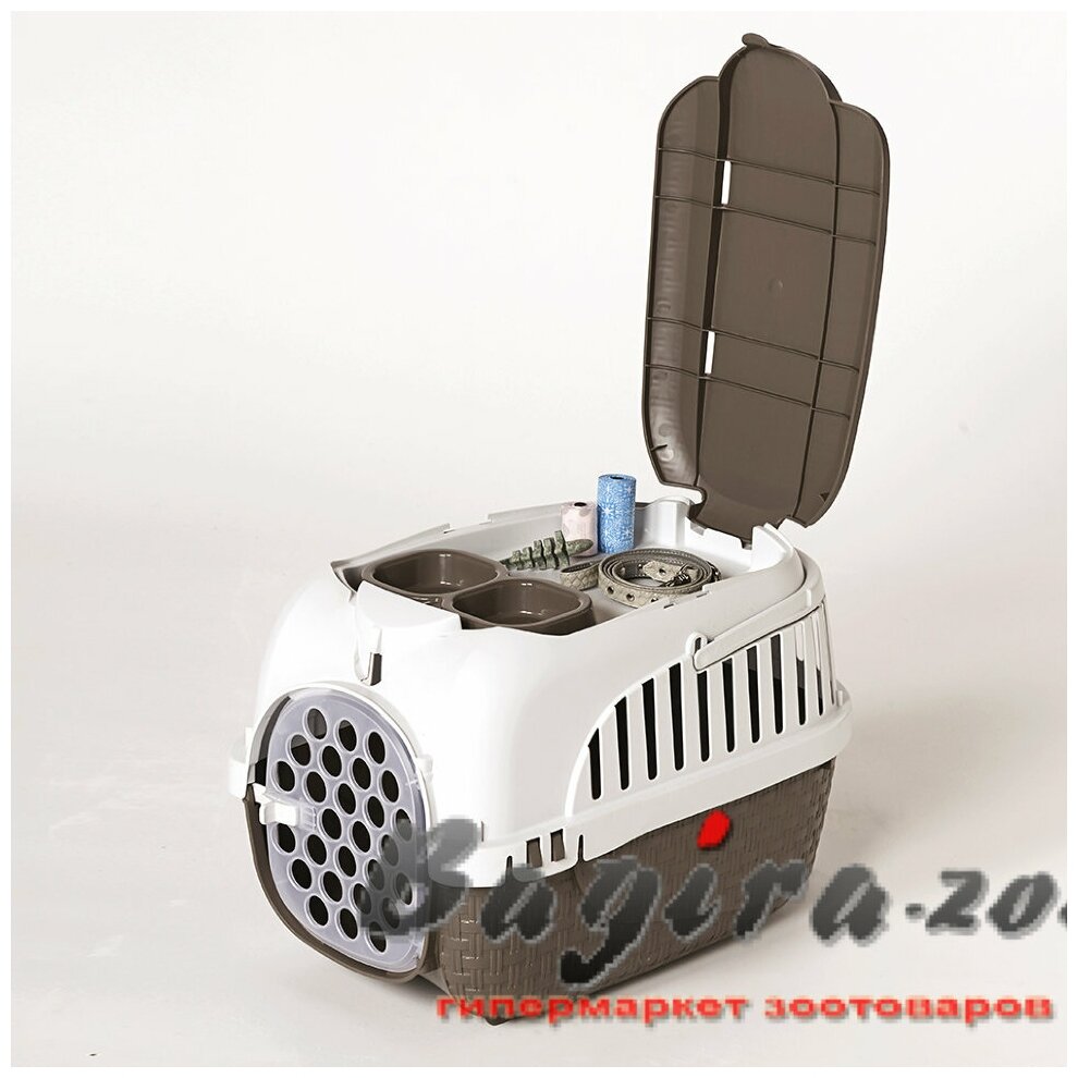 KENNEL TOUR идеально подходит для небольших собак, кошек и кроликов. Эта функциональная переноска станет отличным помощником в путешествиях и походах к врачу! В верхней части переноски есть специальный отсек для аксессуаров, в котором помещается миска, и остаётся место для корма или игрушек. Также на на корпусе предусмотрены специальные выемки для ремней безопасности, чтобы комфортно путешествовать с питомцем на автомобиле. Переноска быстро собирается без использования инструментов, поэтому её удобно хранит