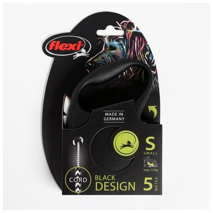 Рулетка Flexi Black Design S (до 12кг) трос 5м (цвета в ассорт.) (98033333)