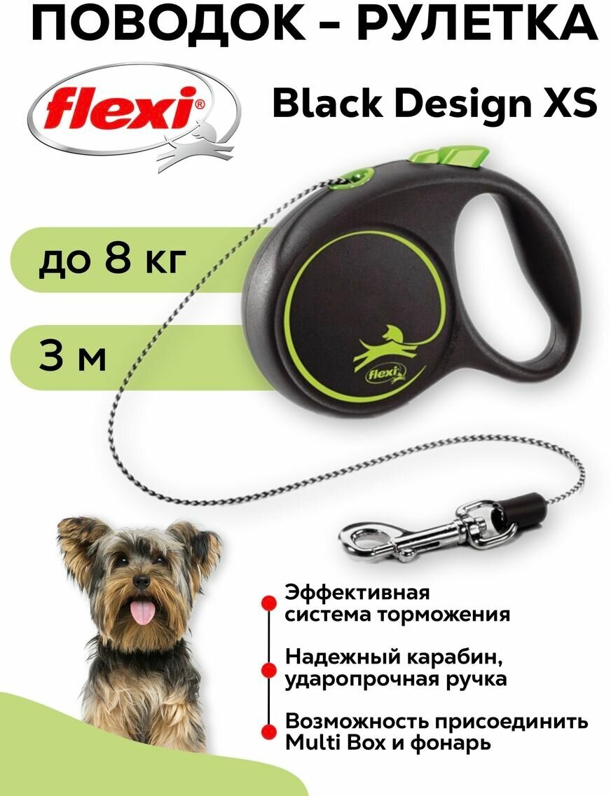 Рулетка Flexi Black Design XS (до 8кг) трос 3м (цвета в ассорт.) (98033203)