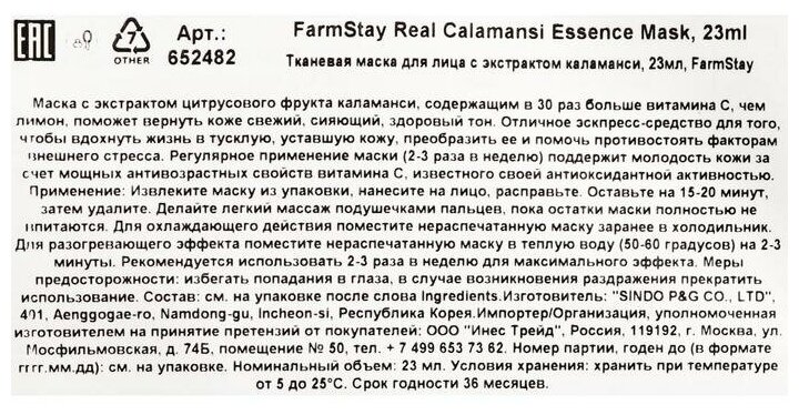 Сервис сравнения цен СкидкаГИД предлагает сравнить цены на товар «Маска тканевая FarmStay для лица с экстрактом каламанси 23мл (652482)»