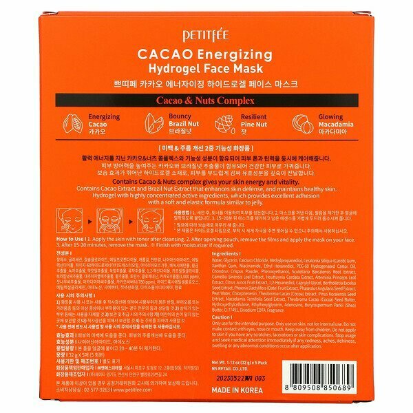 | Коллекция | Petitfee PETITFEE Cacao Energizing Hydrogel Face Mask |