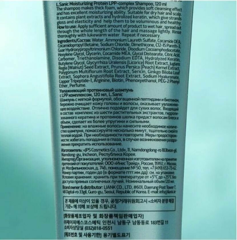 | Коллекция | L.SANIC Moisturizing Protein LPP-complex Shampoo |