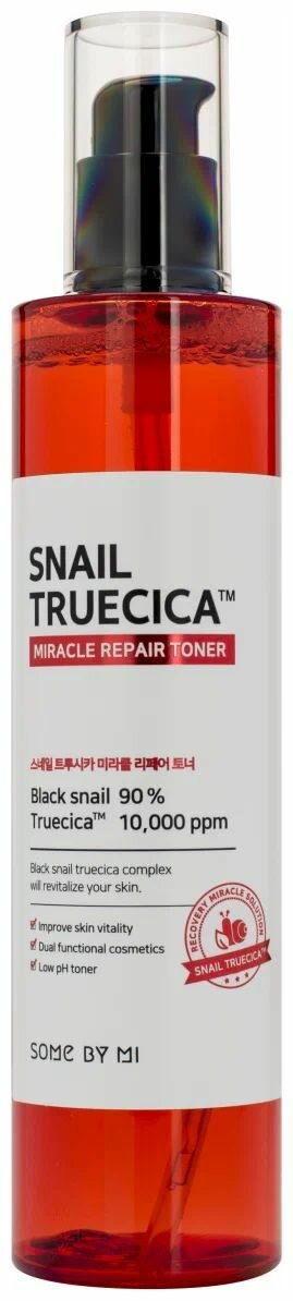 Интенсивный восстанавливающий тонер эффективно успокаивает раздражения и воспаления, поможет прекрасно справиться с постакне, покраснениями на лице, вызванными внешними раздражителями. Тонер содержит 90% муцина чёрной улитки и запатентованный комплекс Truecica, состоящий из экстрактов центеллы азиатской, полыни и чайного дерева, который эффективно успокаивает раздражения и укрепляет защитный барьер кожи. Экстракт муцина чёрной улитки (90%) содержит множество полезных веществ: коллаген, эластин, гликолевая и