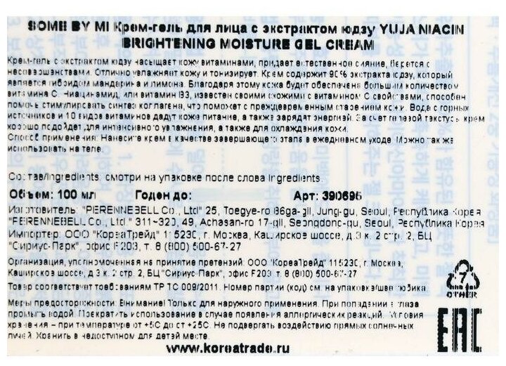 | Коллекция | SOME BY MI Mi Yuja Niacin Brightening Moisture Gel Cream |