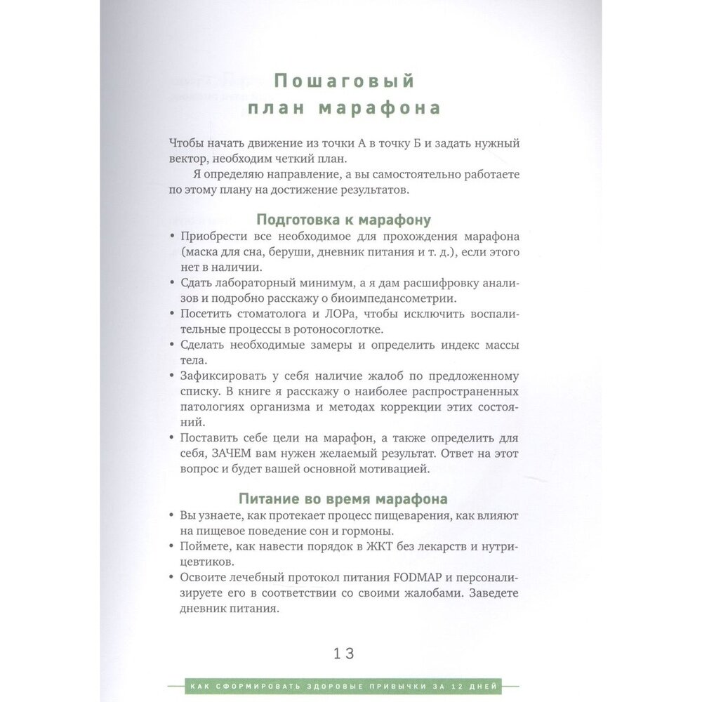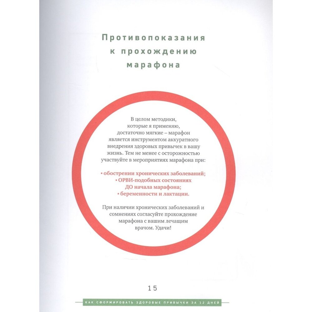 Привлекло название книги, обещание сформировать здоровые привычки ! за 12 дней. Ну скажем нас обманули с самого начала, пусть с благими намерениями - сделать предварительные покупки, скажем беруши и аппликатор Кузнецова и с дать - десяток-два анализов. ДА, в принципе понятно и доступно описан процесс пищеварения. Есть и реальные замечания к 12-дневному плану, стр.82 :Нельзя-чай, кофе, алкоголь. ПОЧЕМУ не предложены заменители в категории - можно?