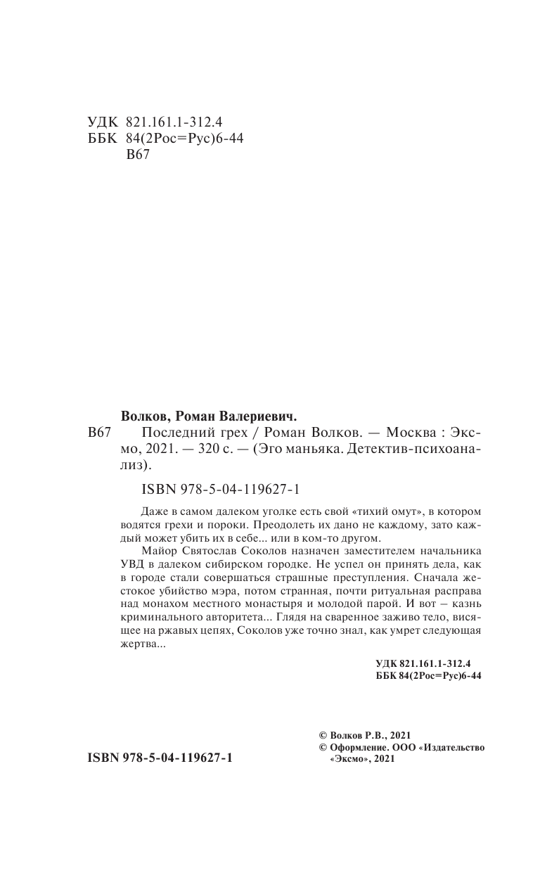 Книга: Последний грех (Роман Валериевич Волков); Эксмо, 2021