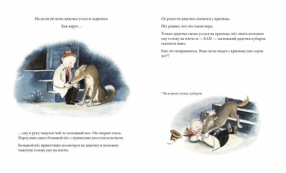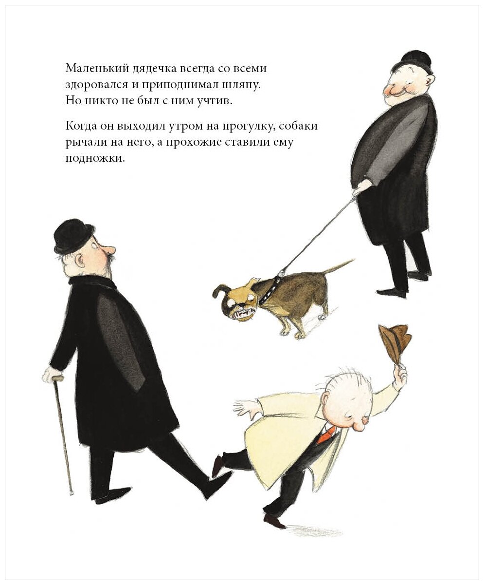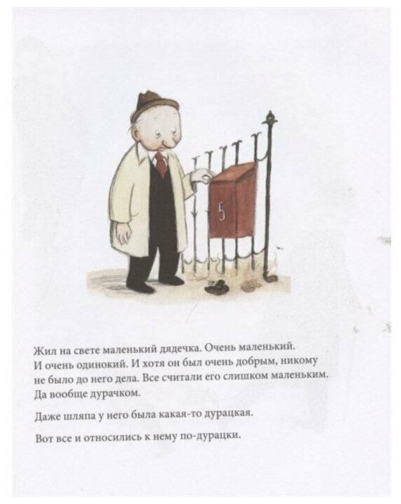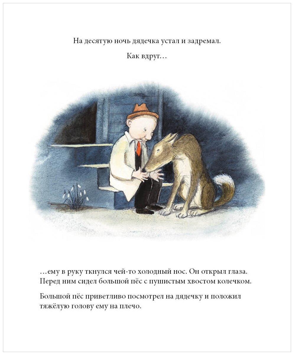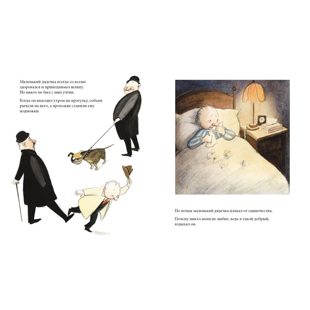 Удивительно нежные, такие уютные и теплые иллюстрации. Узнаваемы уже с обложки. История маленького дядечки, это разговор с детьми об одиночеств, о том как иногда будучи пожилым ты можешь остаться совсем один, И как же хочется иметь друга, если его нет такое тоже бывает. Песик приходит в тот самый момент когда он так нужен. Немножко ревности, смена времен года, дружба и полное понимание. Уютный формат, чудесно оформленая книга.