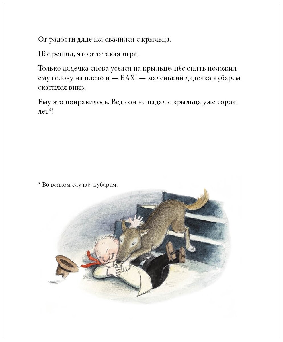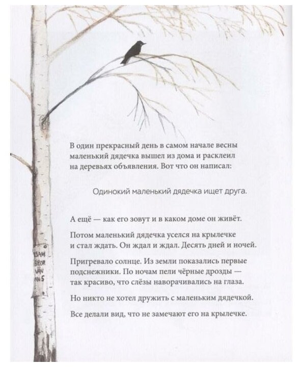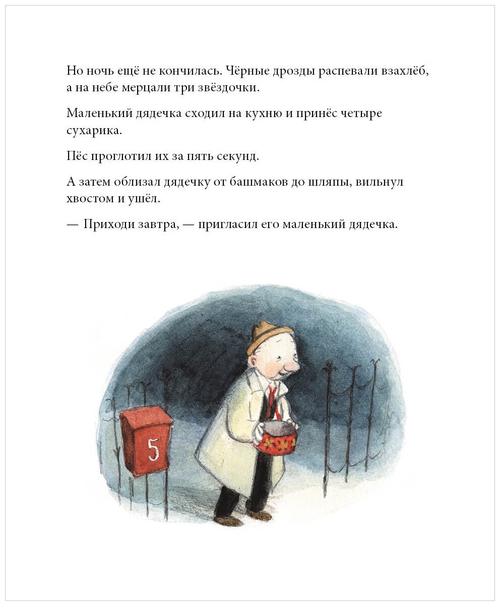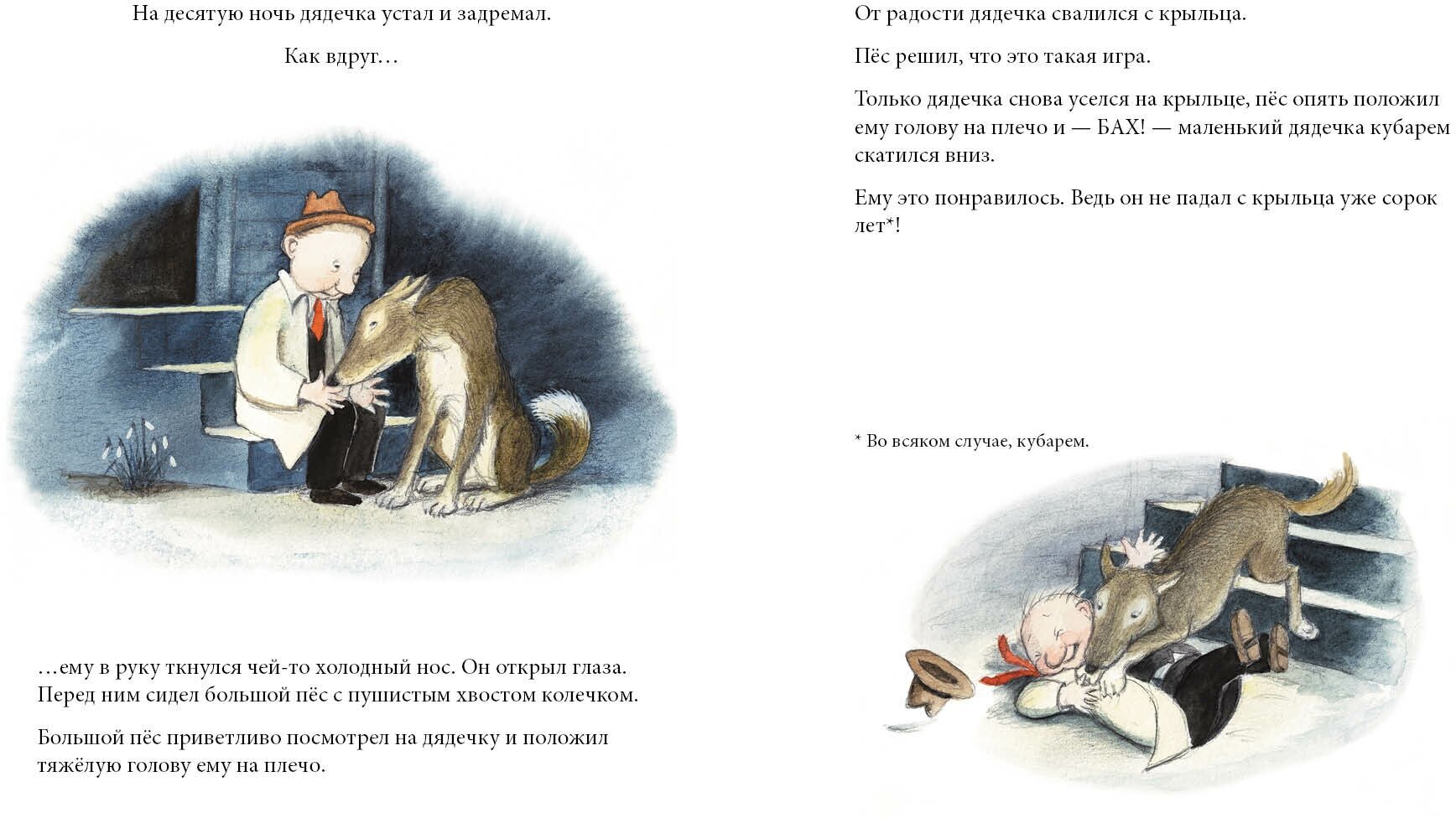 Удивительно нежные, такие уютные и теплые иллюстрации. Узнаваемы уже с обложки. История маленького дядечки, это разговор с детьми об одиночеств, о том как иногда будучи пожилым ты можешь остаться совсем один, И как же хочется иметь друга, если его нет такое тоже бывает. Песик приходит в тот самый момент когда он так нужен. Немножко ревности, смена времен года, дружба и полное понимание. Уютный формат, чудесно оформленая книга.