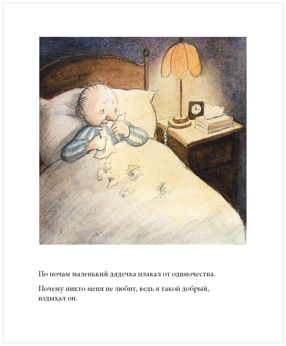 История написана в 1979 году, в иллюстрациях Эвы Эриксон маленький дядечка стал особенно любим читателями с 2010. А мы эту книгу встретили на франкфуртской выставке-ярмарке и не смогли не издать, такая она искренняя и светлая. Хотите, ее сюжет поможет поговорить с самыми маленькими о привязанности и ревности, хотите, книга подарит невероятное чувство сострадания и симпатии к одиноким пожилым людям, а хотите – она просто будет простой легкой сказкой с восхитительными по-скандинавски уютными картинками.