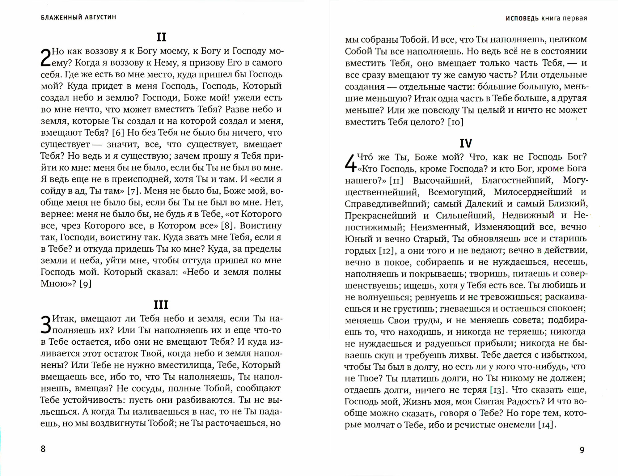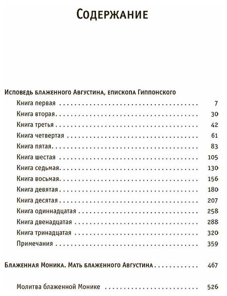 В сборник включены две книги - "Исповедь блаженного Августина, епископа Гиппонского" и Жизнеописание блаженной Моники под названием "Блаженная Моника. Мать блаженного Августина". "Исповедь" считается первым образцом автобиографии в европейской литературе. Она охватывает часть жизненного пути блаженного Августина (33 года из около 40 прожитых им к моменту написания) и содержит повествование о его духовном поиске. Блаженную Монику почитают как покровительницу матерей.