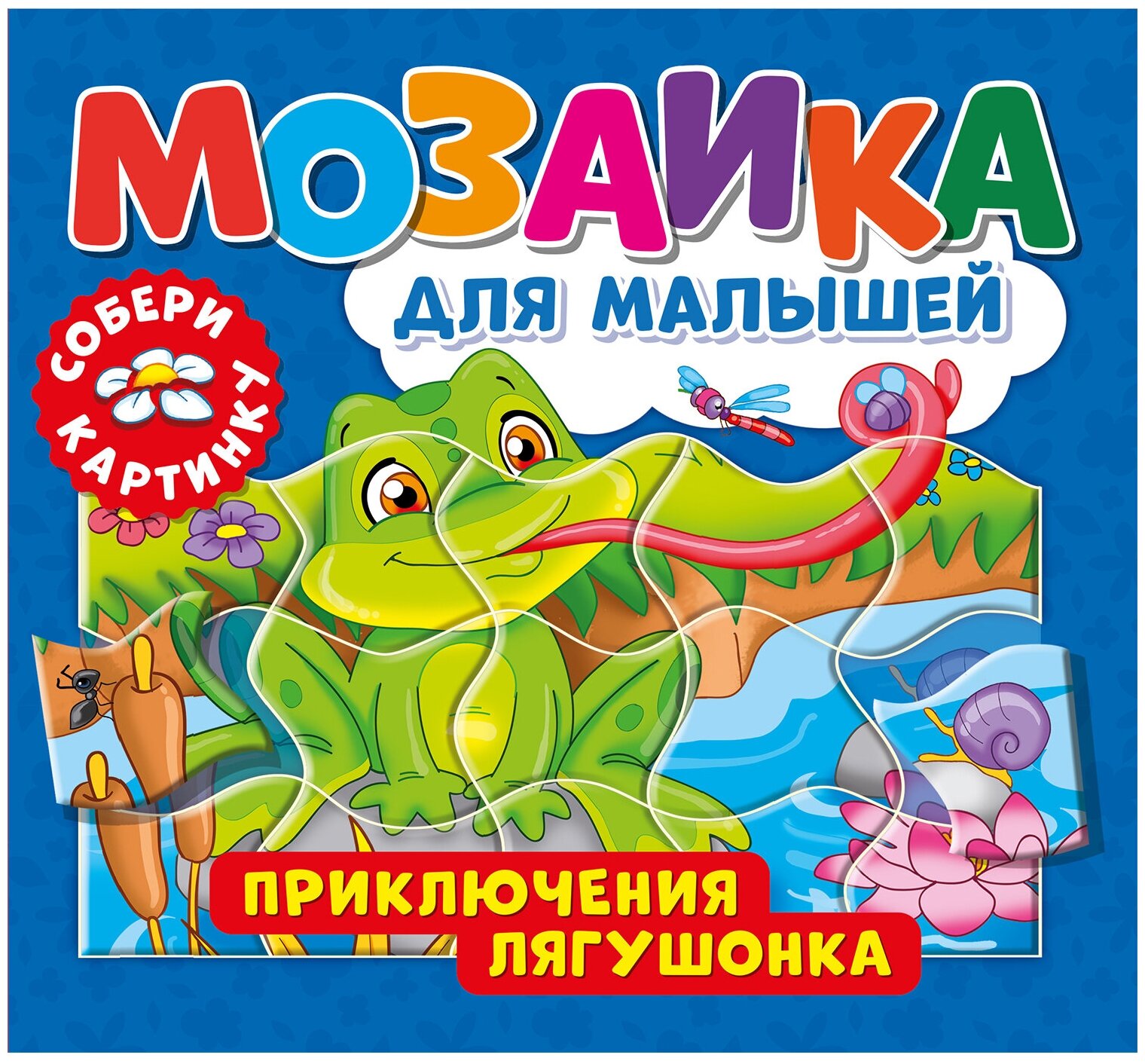 Мозаика для малышей "Приключения лягушонка" - забавные, интересные и поучительные истории для самых маленьких. А также 4 пазла на разворотах, собрать которые помогут цветные основы-подсказки. Книжки выполнены на плотных картонных листах, у которых отсутст