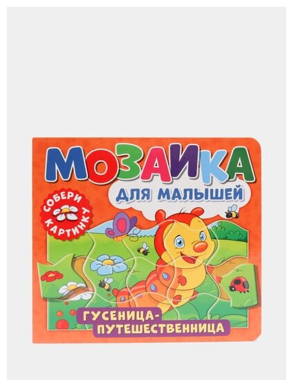 Мозаика для малышей "Гусеница-путешественница" - забавные, интересные и поучительные истории для самых маленьких. А также 4 пазла на разворотах, собрать которые помогут цветные основы-подсказки. Книжки выполнены на плотных картонных листах, у которых отсу