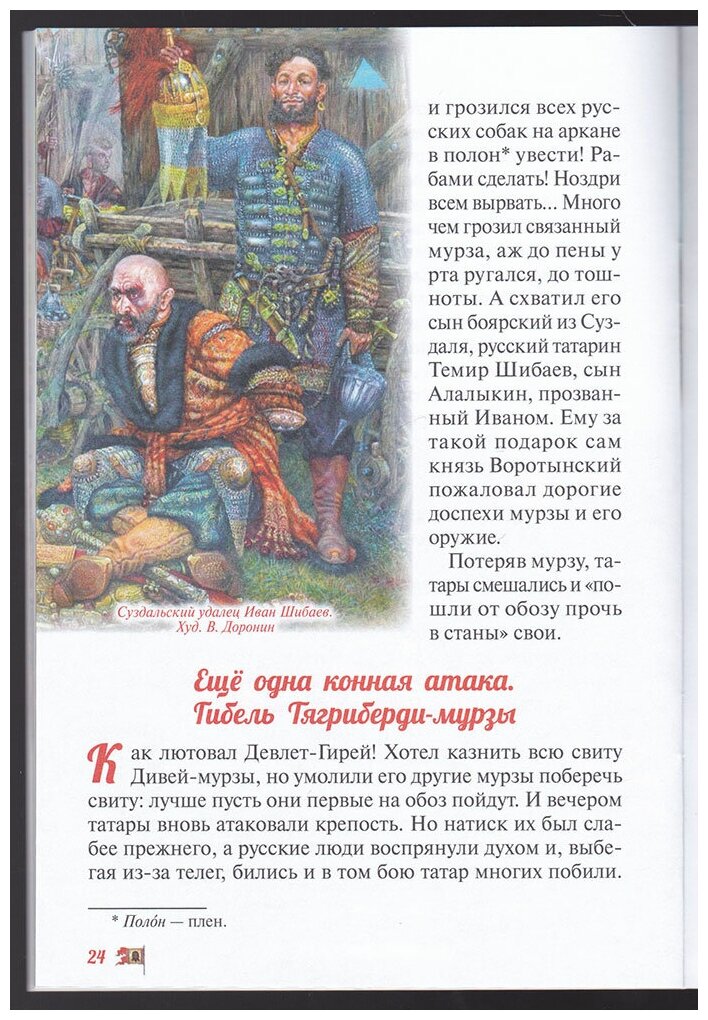 К сожалению, в книге ничего не говорится о дальнейшей судьбе князя Воротынского, героя-полководца, спасшего Москву и Россию от татар. А ведь вскоре после столь громкой победы с ним расправился Иван Грозный - обезумевшее чудовище, мучительно казнившее всех подряд. Царь просто не мог видеть рядом с собой Воротынского, напоминавшего ему о его жалкой трусости в период татарского нашествия (см., например, историка Костомарова). Между тем, ведь еще граф Алексей Толстой писал как раз о жестоких истязаниях Воротынского в застенках - "царь своим жезлом подгребает угли"! О трагической судьбе Воротынского писал и князь Андрей Курбский.