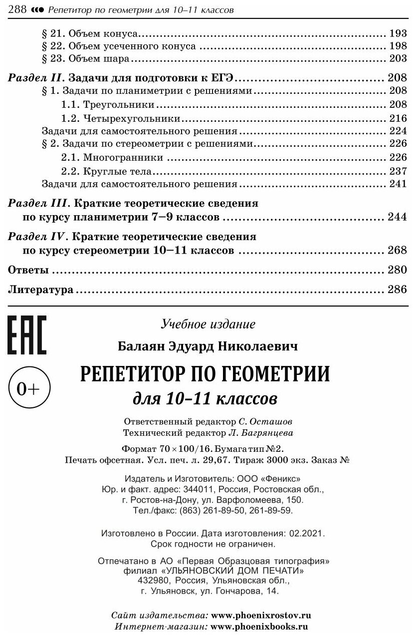 Репетитор по геометрии для 10-11 классов (Эдуард Николаевич Балаян); Феникс, 2021