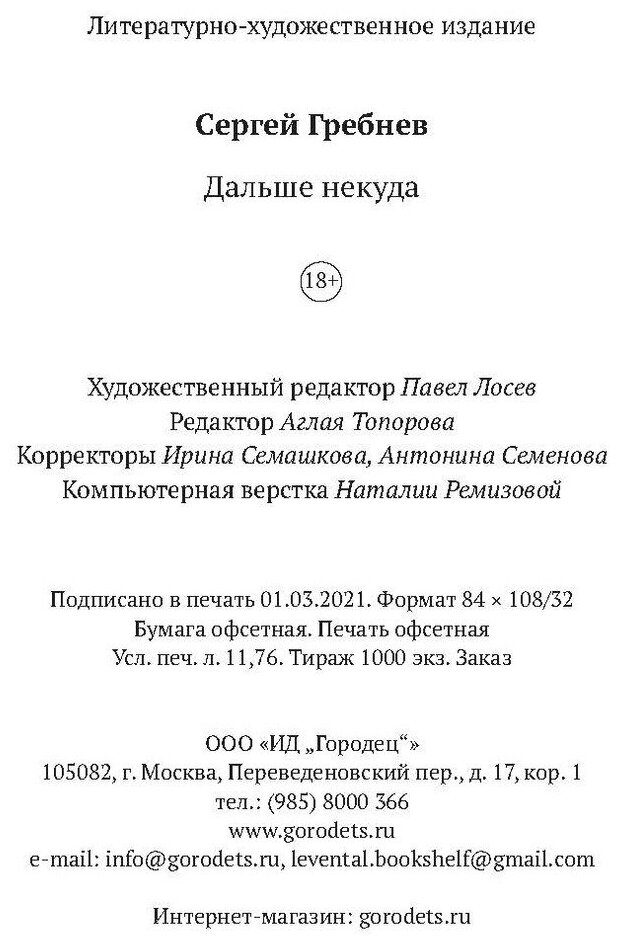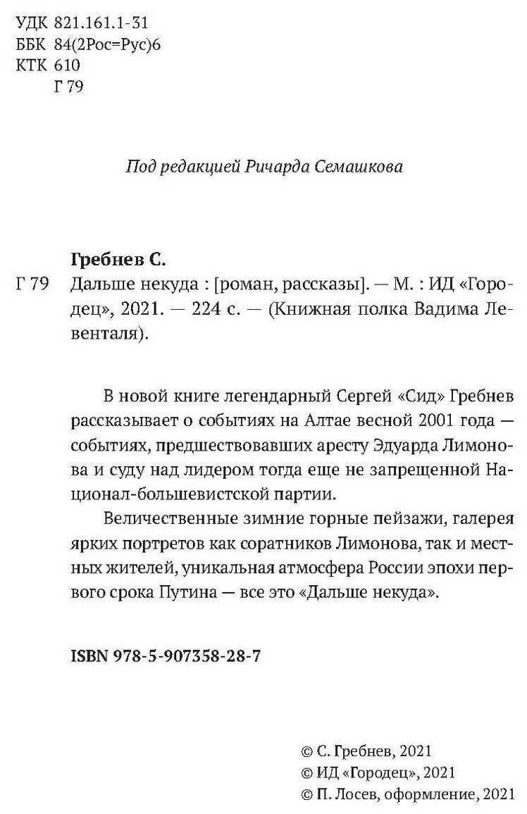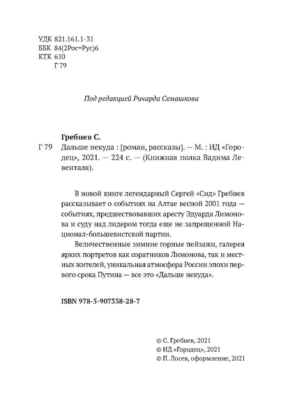 Книга: Дальше некуда (Сергей Гребнев); Издательский дом «Городец», 2021