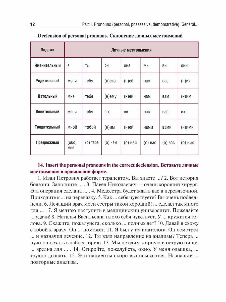 Учебное пособие предназначено студентам медицинских вузов, обучающимся с использованием языка-посредника (английского), владеющим русским языком на базовом уровне (А2). Пособие основано на рабочей программе «Русский язык как иностранный» (31.05.01 «Лечебное дело»).