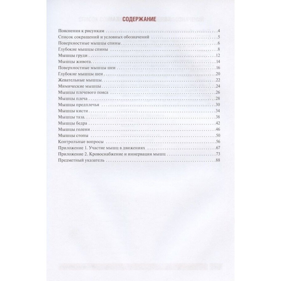 Миология — традиционно сложный для изучения раздел анатомии. Одна из трудностей заключается в большом объеме описательного материала, изложенного в основной учебной литературе. В данном учебном пособии необходимый для усвоения материал представлен в максимально обобщенной и наглядной форме: основные сведения о мышцах приведены в виде конспекта, цветные схематичные рисунки создают четкое представление о взаимном расположении мышц в пределах группы или отдельного мышечного слоя, в приложениях в виде таблиц дана информация о функциях мышц (их участии в движениях), а также их кровоснабжении и иннервации.