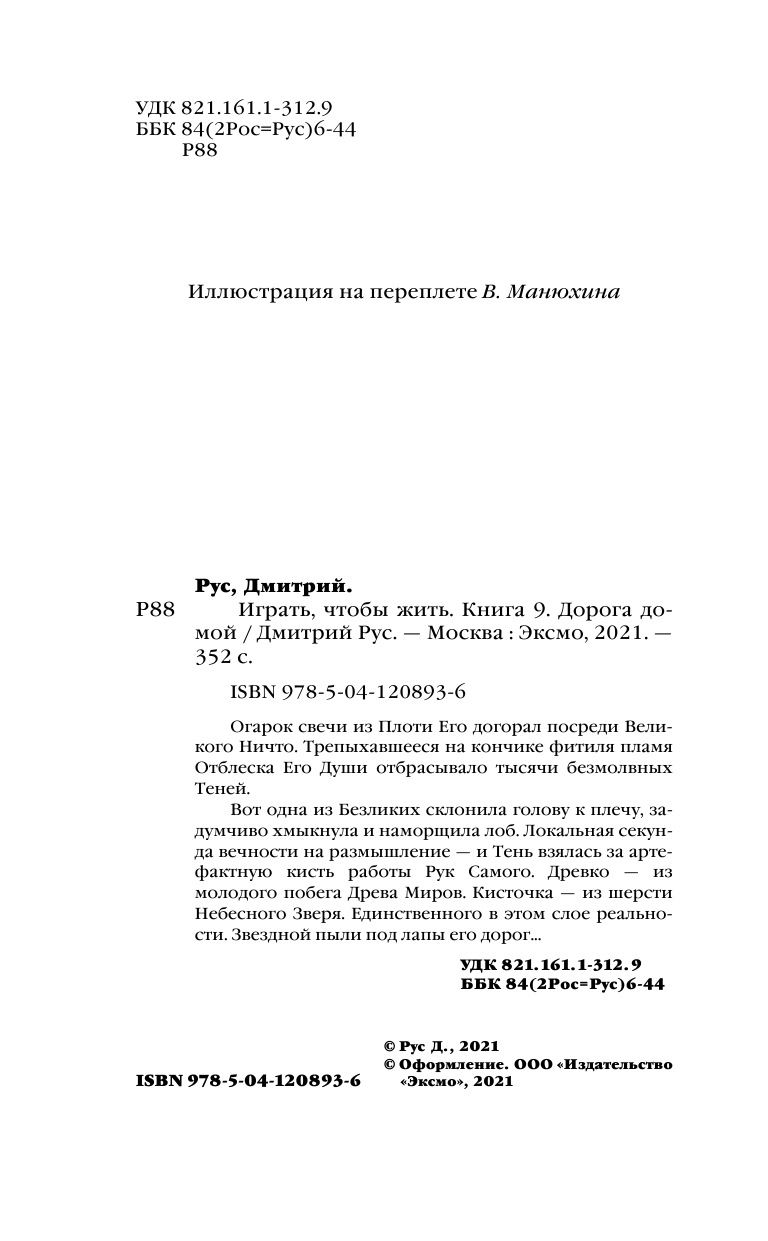 Играть чтобы жить. Книга 9. Дорога домой (Дмитрий Рус); Эксмо, Редакция 1, 2021