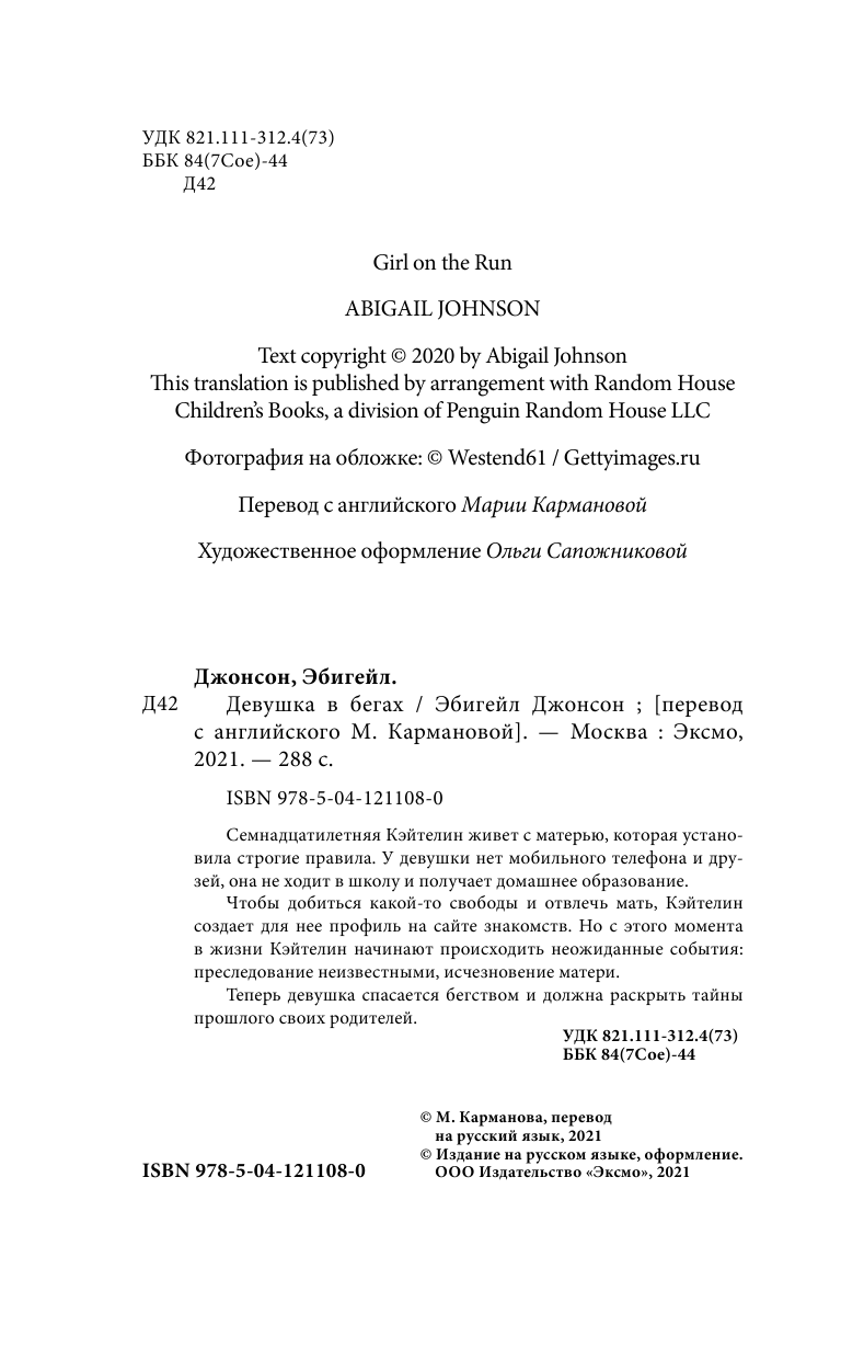 Книга: Девушка в бегах (Эбигейл Джонсон); Эксмо, Like Book, Редакция 1, 2021
