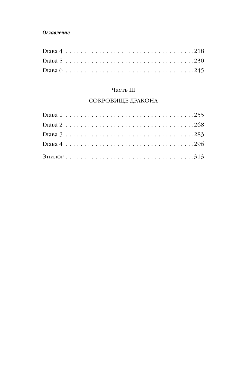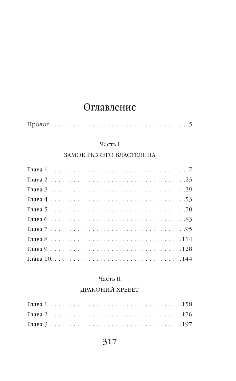Судите сами по окончанию первой и второй главе со стр. 16 по 39. Есть оглавление, которое состоит из трех частей : ч.1 "Замок рыжего властелина", ч.2 "Драконий хребет", ч.3 "Сокровище дракона". Эти части делятся на главы без названия. Художник И.Косулина.