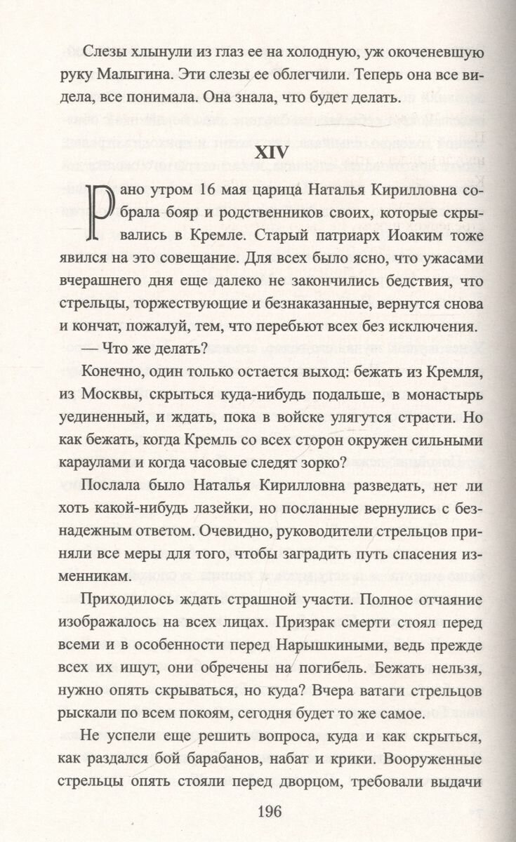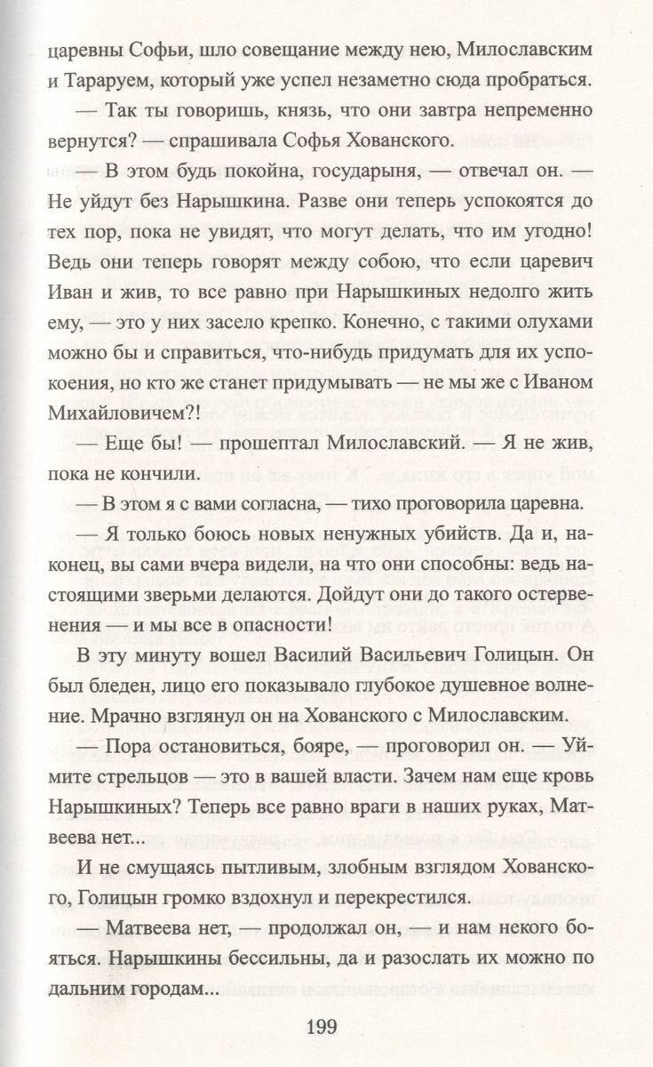 С данным автором раньше не была знакома. Классика, сюжет в стиле Вальтера Скота. До этого царевну Софью описывали как,некрасивую жестокую, в данном случае ее характер показан с разных сторон и более глубокого проанализирован. Интересует атмосфера этого времени, чувствуется что автор серьезно изучил предмет. Интересно подобраны герои, единственное, что с современной действительностью некоторые реакции на события кажутся наивными. Но это как раз и напоминает сюжет из книг Вальтера Скота.
