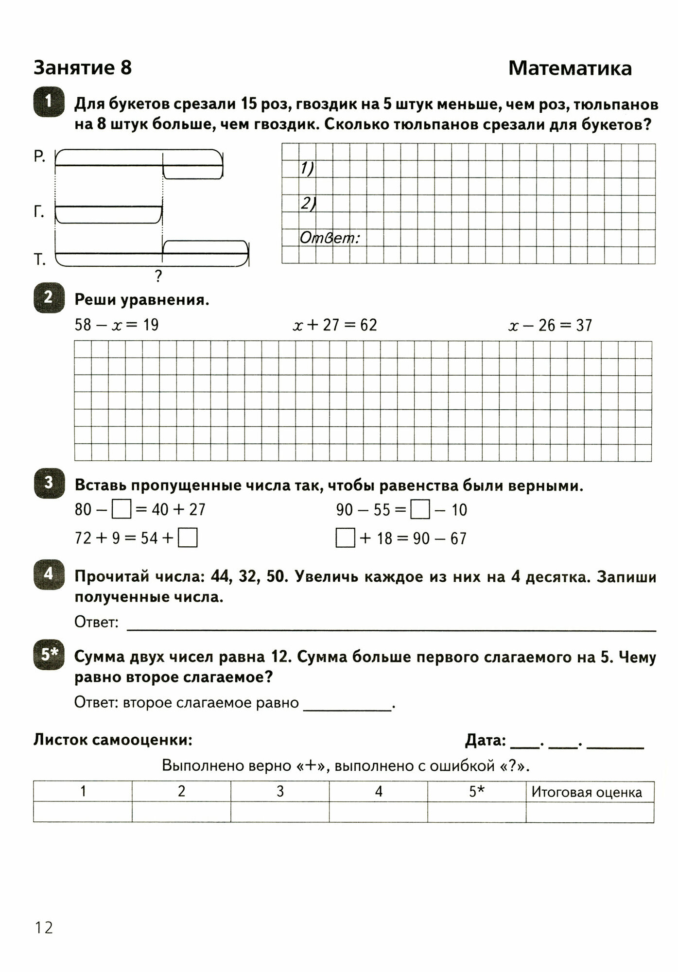 Книга содержит 50 занятий с заданиями по русскому языку, литературному чтению и математике. Ответы даны в середине книги, чтобы их можно было удобно изъять. Задания составлены в соответствии с ФГОС начального общего образования.