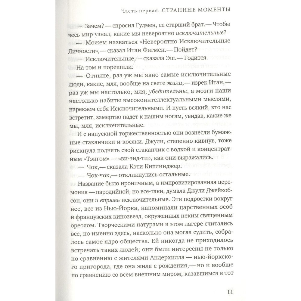 «Исключительные» книга, в первую очередь, об изнанке дружбы. Очень понравилось, как раскрыли дружбу не благородную, без оттенка самопожертвования, бескорыстности, а ту, где имеет место быть зависть, та самая, желчная и всепоглощающая. Конечно, не только на этом строится сюжет книги (там раскрываются и взаимоотношения людей в браке, и конфликт с самим собой (что я могу, что хочу и что должен — и раскрывается хорошо, во многом узнаешь себя и свои метания). Но именно дружба, которую демонстрирует нам Вулицер, а точнее — чувства человека, который дружит с человеком более красивым/успешным/талантливым — прописана очень тонко. Действительно впечатляет.
