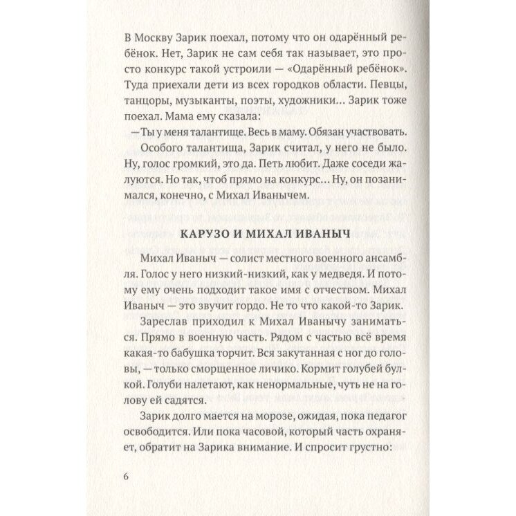 В далёком северном городе, где почти круглый год зима, живёт мальчик с красивым именем Зареслав. У него вокальный талант, он участвовал в конкурсе "Одарённый ребёнок" и был награждён поездкой в Москву. Мама мечтает, что когда-нибудь её Зарик станет солистом Большого театра, но увидеть сына на сцене ей уже не доведётся. Мальчик переживает разочарования и потери, которых на одного ребёнка выпало, пожалуй, слишком много. Как справиться с болью и можно ли помочь себе самостоятельно?