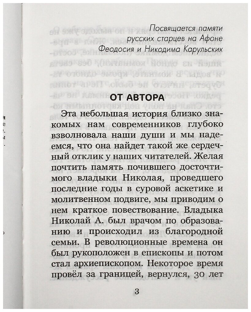 Иеромонах Симон (Бескровный) умеет вмещать в свои тексты насыщенные смыслом и опытом послания христианам, желающим спасения. Особенность этой небольшой книжки в том, что здесь содержится история общения и ученичества у Владыки Николая А. Он был епископом, проведшим 30 лет в лагерях, после которых стал "простым" молитвенником и аскетом. Скончался в возрасте 104 лет в 1994 году, сохранив до смерти ясность ума и рассуждения. Эта книга посвящена ему и духовному опыту, полученному от него автором. Думаю, для ищущего Царствия Небесного эта книга станет драгоценной жемчужиной.