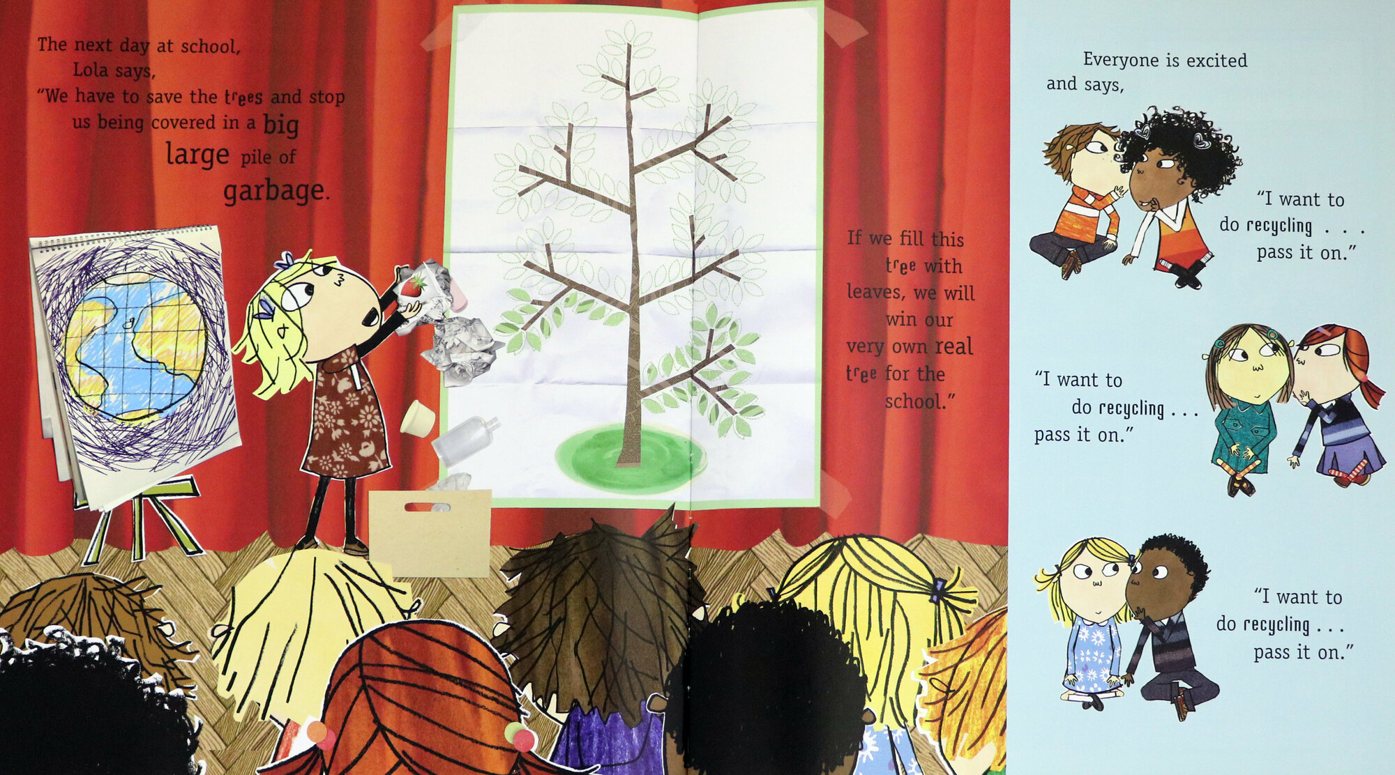 After Charlie convinces Lola to recycle her old toys instead of throwing them away, Lola discovers a recycling competition. If she can recycle one hundred plastic, metal, and paper items, she can get her very own real live tree to plant. But she only has two weeks, so Lola decides to ask her classmates to help. They turn out to be extremely very good recyclers indeed.